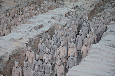 المكان هو مدينة زيان (أو شيان) شمال غرب الصين، والزمان عام 246 قبل الميلاد، حين أمر إمبراطور الصين الأول كين شين هوانغ ببناء هذا الجيش ليتم دفنه معه عندما يموت، وأمر حينها كين بألا يكون هناك جنود مُتشابهون في هذا الجيش بأكمله، وهذا ما تم بالفعل ببراعة مثيرة للدهشة.