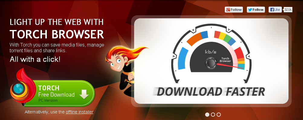 برنامج torch browser أو الشعلة باللغة العربية هو متصفح أنترنت قوي و أمن و مجاني مفتوح المصدر، تم تطويره بواسطة المنصة الحرة تكنولوجيا الكروم،ويعطيها قدرات التصفح السريع. مع الشعلة، يمكنك مشاركة المواقع على مواقع التواصل الإجتماعي، تحميل مباشر لوسائط الميديا ، مدير تورنت مدمج قوي و مطور ، مسرع الأنترنت تقنية السحب والإسقاط ، تطبيق موسيقى غني و جميل برنامج الشعلة قوي و مصمم ليكون سهل الإستعمال تحت شعار الكل في واحدندعكم مع صور للبرنامج و روابط التحميل و شروحات ڤيديو من الموقع الرئيسي